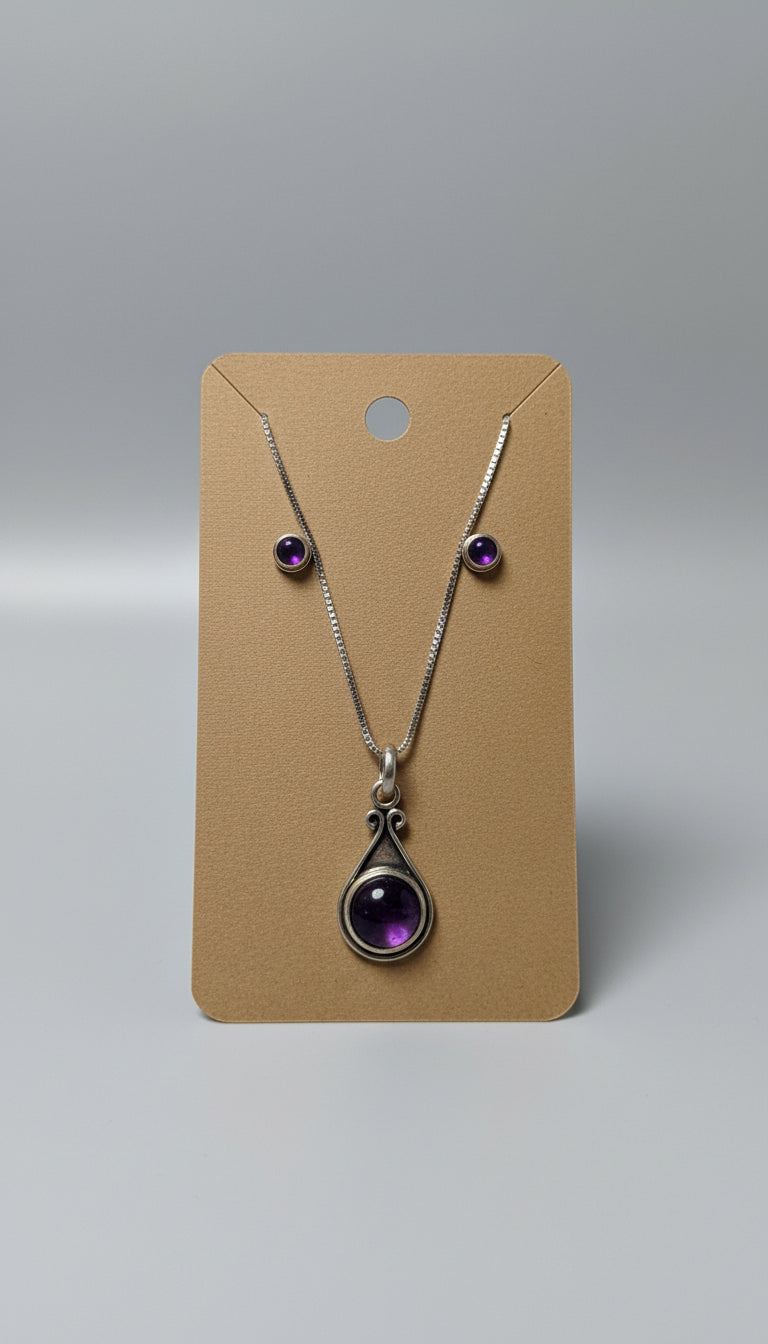 Completo in argento , set composto da orecchini e collana con pietra in ametista