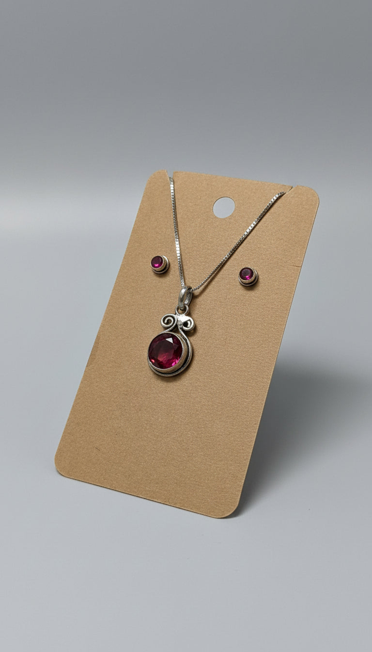 Completo in argento , set composto da orecchini e collana con pietra in granato sfaccettato